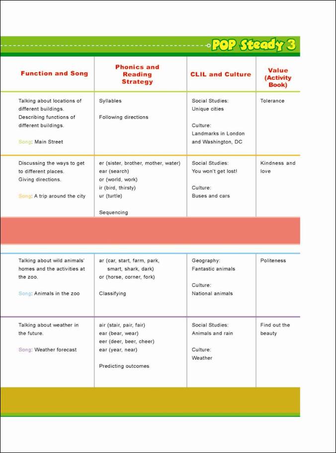 《泡泡少儿英语进阶级3》(POP Steady 3)是新东方教育科技集团泡泡少儿英语学术研究中心专门为中国8-10岁少年儿童编写的一套综合类英语教材。该教材倡导为少儿的英语学习创造一个多元的世界,让孩子在有趣的故事、动听的英伦原创歌谣、多样的活动练习、多学科及跨学科知识的熏陶下培养对语言的感知力,建立自信心,并激发他们学习语言的动力。教材内容以全日制义务教育小学英语新课程标准和欧洲共同语言参考标准(CEFR)为蓝本,涵盖了剑桥少儿英语(YLE)最新考试大纲要求的所有语法结构和词汇。