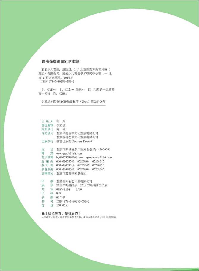 《泡泡少儿英语进阶级3》包含学生用书、活动手册、我的单词书、一张MP3光盘及一张CD-ROM故事及歌曲动画。